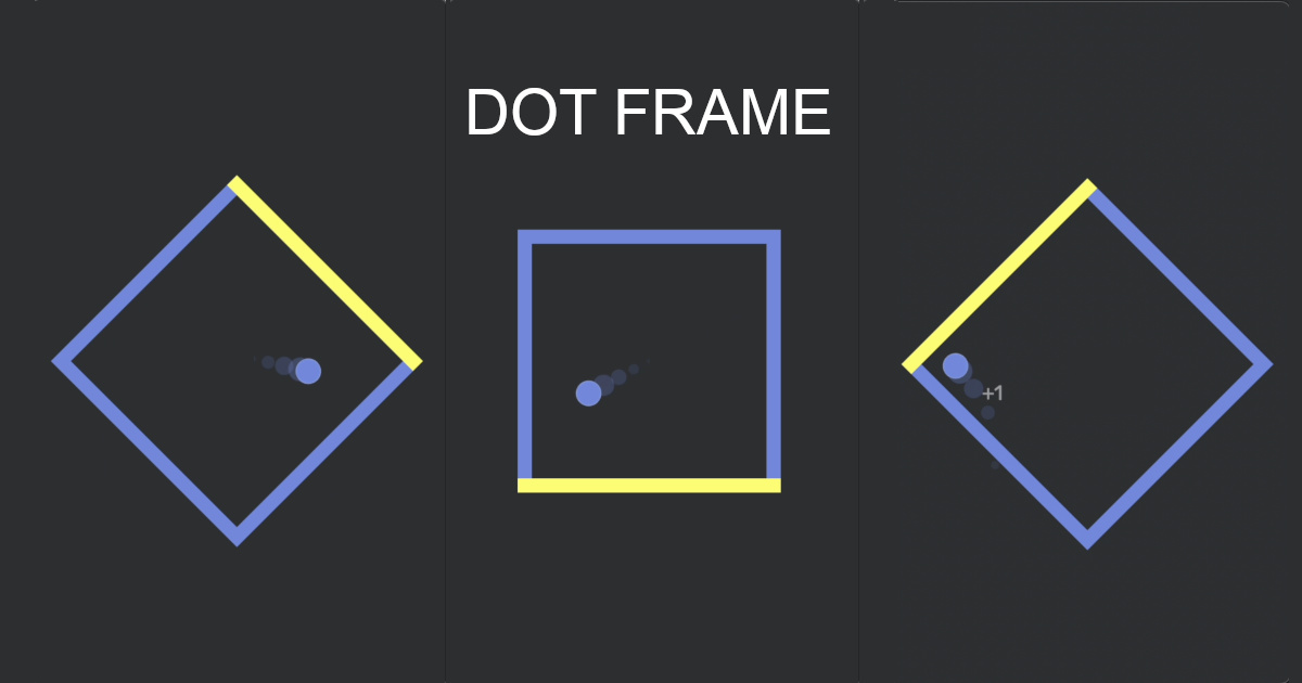 Keep color dot in frame with same color and get maximum score. Tap on screen to rotate frame, avoid border with yellow color.