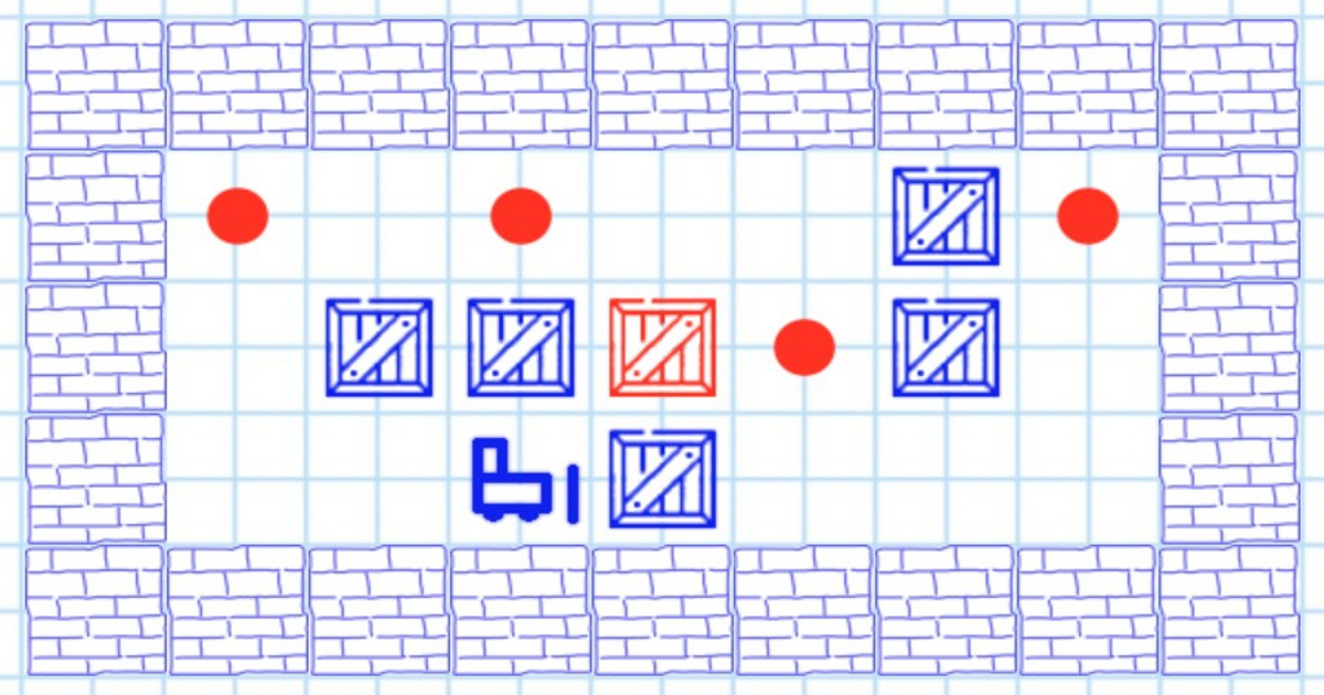 Push boxes into the designated red areas. You cannot push two or more boxes at once. Have fun!